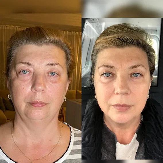 Ihr Unterkiefer ist nun besser definiert, Augenringe und Schwellungen sind fast vollständig verschwunden, die Augen wirken offener, und das Oberlid ist sichtbar gestrafft. Ihr gesamtes Gesicht hat an Kontur gewonnen. Die positiven Veränderungen blieben nicht unbemerkt, und sie erhält viele Komplimente. Wenn sie verrät, dass sie 61 Jahre alt ist, können die Leute es kaum glauben. Dank des 28-Tage-Programms wird sie deutlich jünger geschätzt.